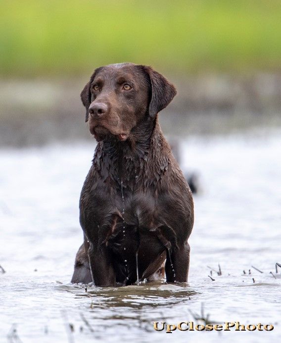 Roux followed his dad’s footsteps earning his Grand Hunting Retriever Title, Upland Hunting Title and Master Hunting Title. Not only did Roux show talent in the field but he is a Fantastic family dog.